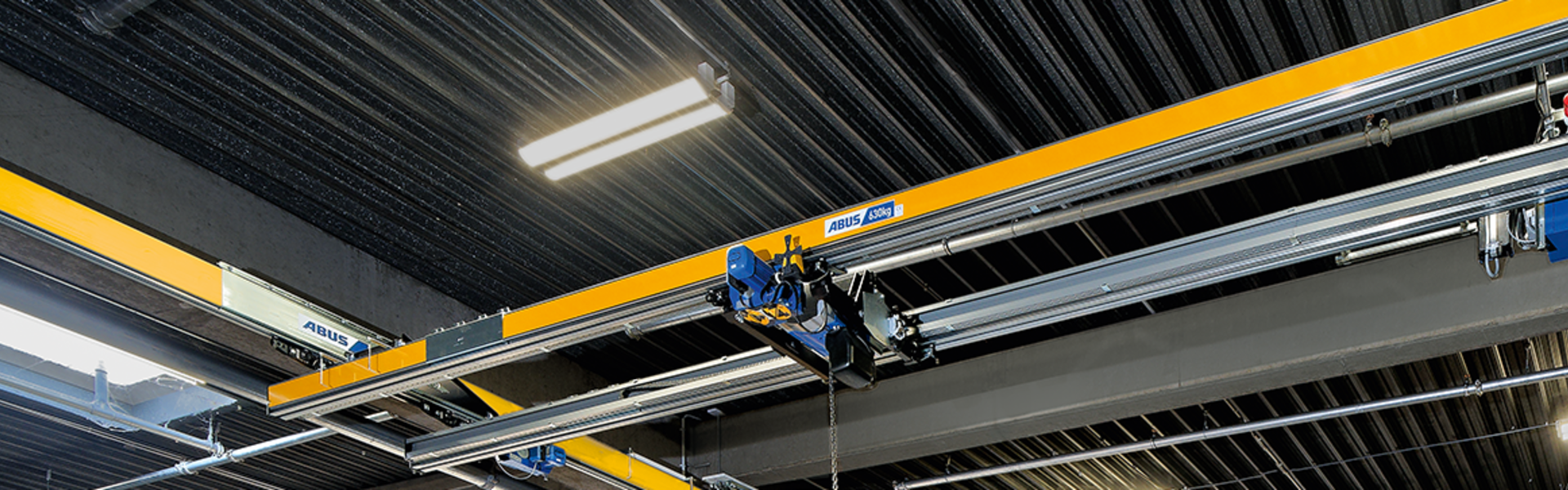 The ABUS double girder crane ZHB is our answer for heavy loads combined with area-coverage transport. The ZHB is also characterised by long crane girder lengths. The ABUS chain hoist is also suspended between the crane girders making for an optimised lifting height.