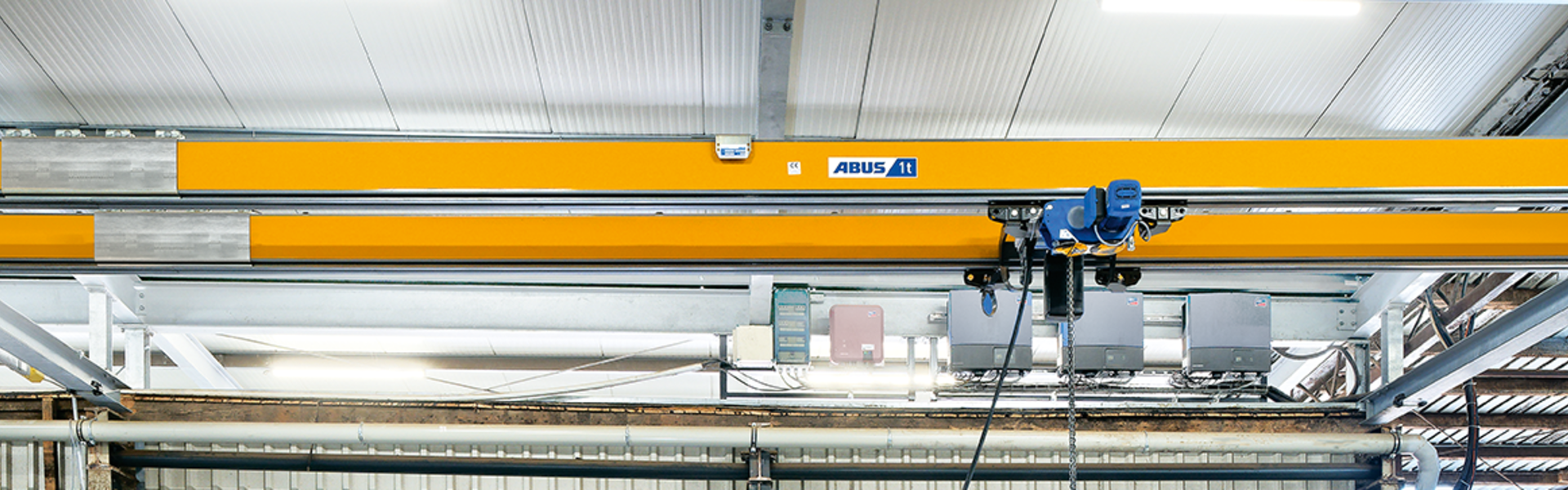 The ABUS double girder crane ZHB-I is our answer for heavy loads combined with area-coverage material transport. The ZHB-I is also characterised by long crane girder lengths. The crane travels directly on crane tracks consisting of rolled-section girders. The ABUS chain hoist is also suspended between the crane girders making for an optimised lifting height.