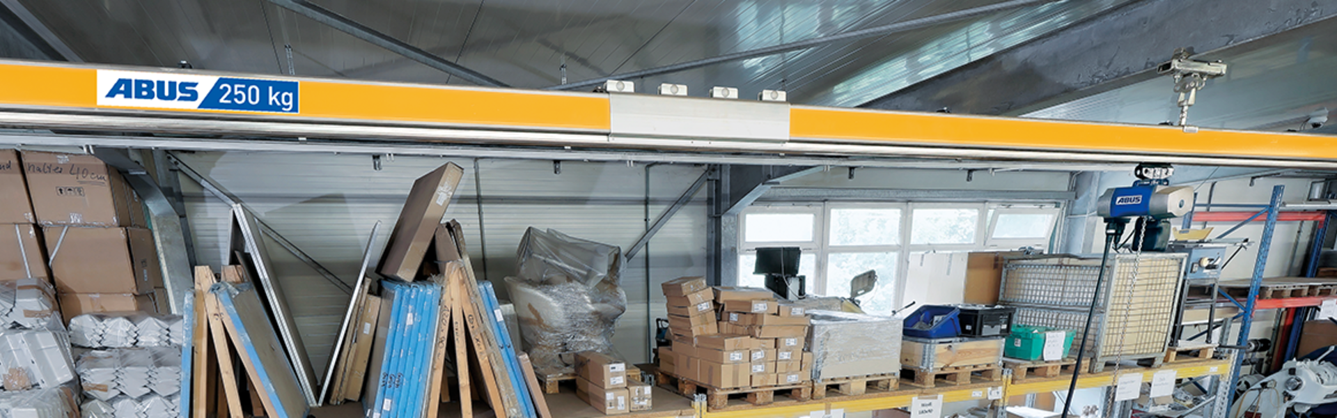 The ABUS monorail specialises in lifting loads locally and in linear point-to-point transport. With the help of curved sections your hoist is able to travel through the building exactly as you need it to. Workstations could be linked in this way if required or the crane could be adapted to fit individual machinery locations.