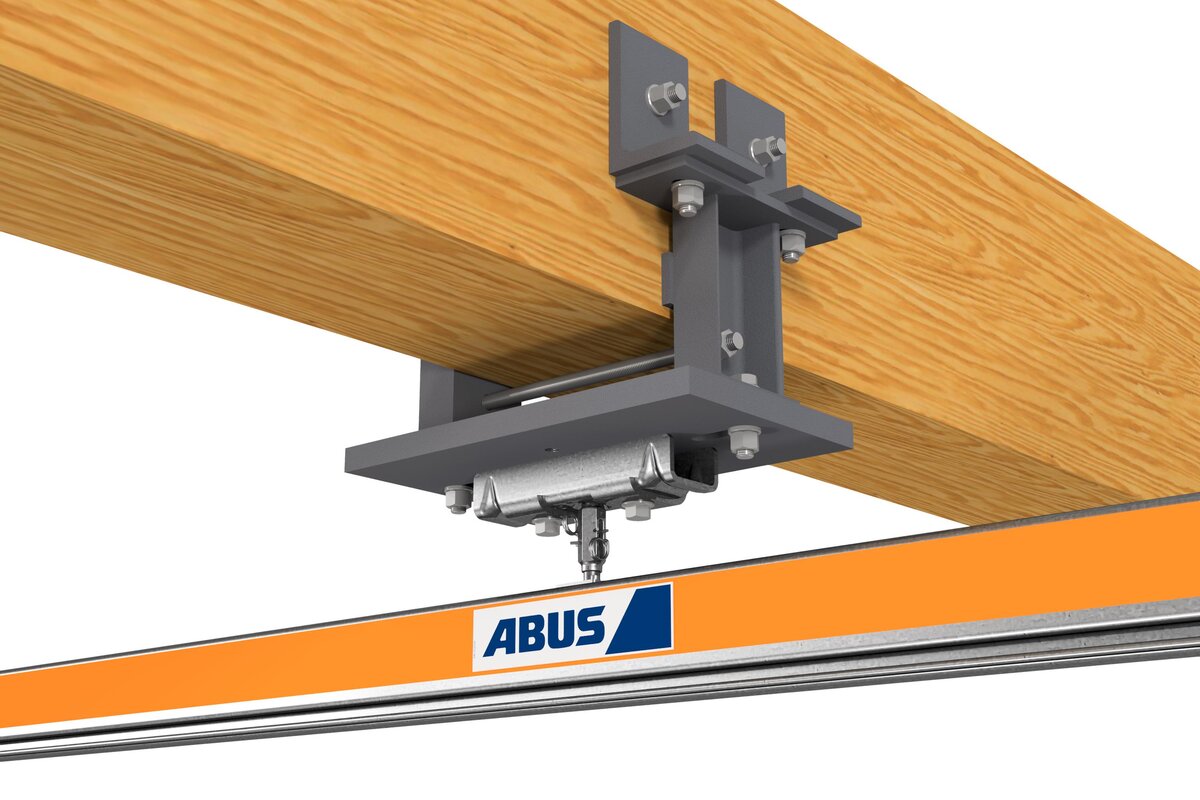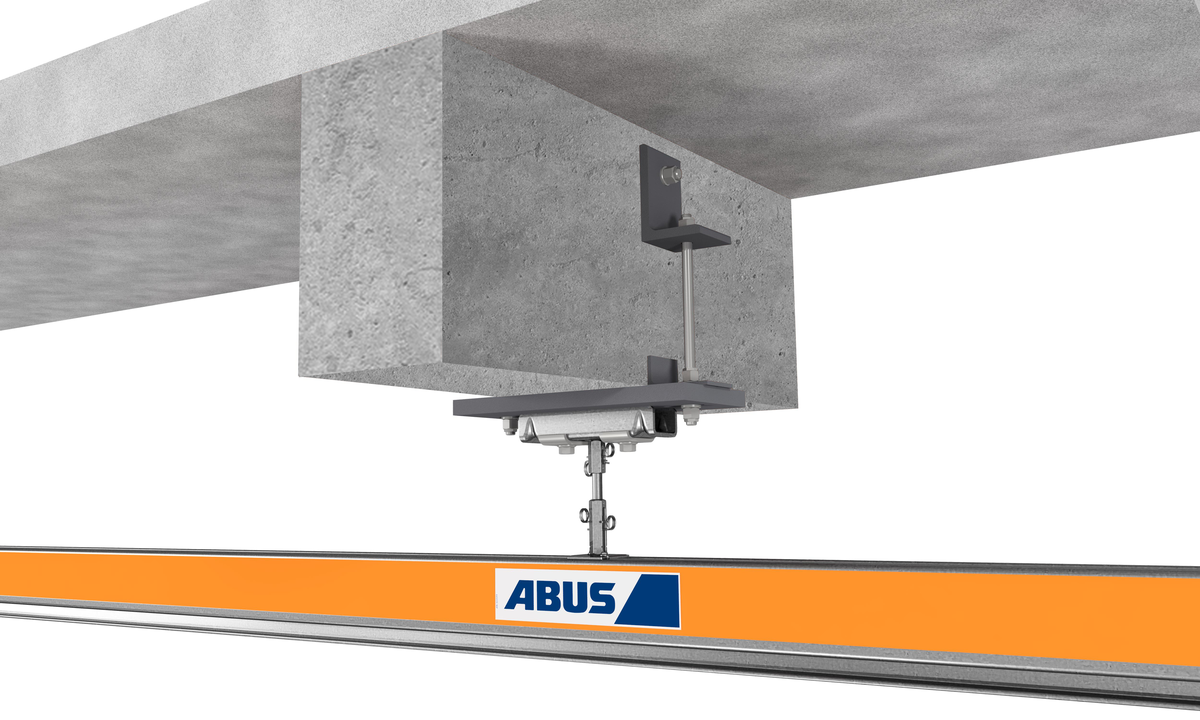 Using ABUS binder brackets, suspended rail systems can be fastened directly underneath your supporting structure. Here the binders are drilled through on the side - it is not necessary to have access to the assembly area from above.