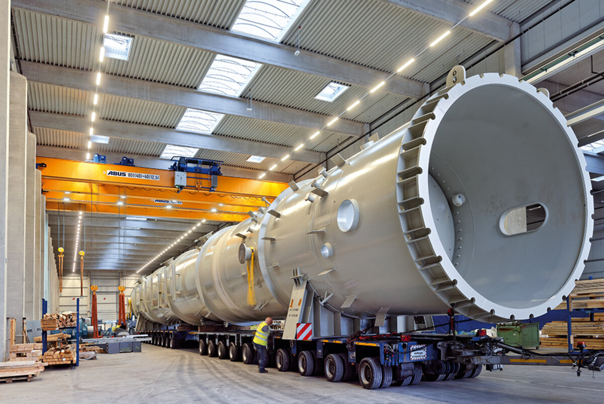 The ABUS synchronisation control of two hoists on one crane ensures secure handling of long goods. Permanent automatic control effectively prevents the lifting speeds from getting out of sync even if the hoists are different—provided that the crane is fitted with a frequency converter for lifting. Travel speeds are also controlled for cranes operating in tandem. Two cranes, up to four hoists, and lifting: everything under control.