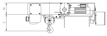 | Model | Reeving | Load cap. (t) | Hook path (m) | C (mm) | H (mm) |