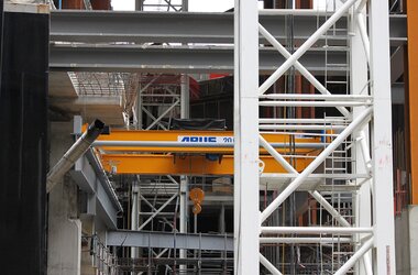 ABUS' contribution to this record is a 20 t SWL ZLK double girder crane installed during the summer of 2010 within the Shard Building on itsLondon Bridge site. The crane with its small span of 5.325m and downshop run of 20m is planned to be utilised for the ‘Goods-In’ offloading of building equipment and fixtures within the construction phase of the structure. It was initially planned to remove the crane following building completion, but may now be left in place to continue its role within the working building. The complete project has been handled and realised by the ABUS UK based subsidiary, ABUS Crane Systems Ltd (www.abuscranes.co.uk).