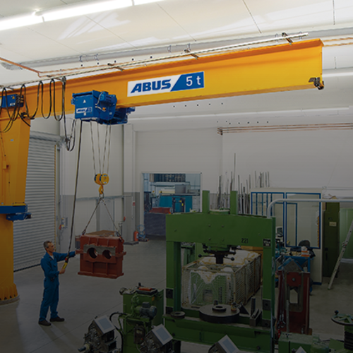 32 jib cranes were also supplied, the majority of which were mounted on the factory floor via anchor bolts set into a concrete foundation. Overbraced ABUS LS jib cranes with a Safe Working Load of 1000 kg were employed in lighter weight applications, while the heavier duty underbraced ABUS VS type jib crane was chosen for applications where a Safe Working Load of 2 tonnes was required.
