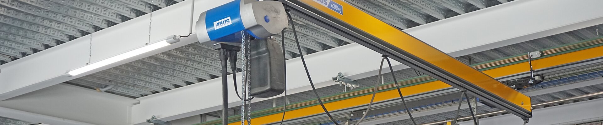 These HB systems include—among other components—an electric chain hoist of the ABUCompact GM4 series with a maximum load capacity of 630kgs. The main power supply via a protected AVKL line allows the best possible use of the cranes along the crane track. Trolley travelling is manual which makes it easy for the crane users to transport heavy loads with ease and speed. The installation of the HB systems has given the company great benefits: it has eased the efforts of the workers significantly by enabling them to carry out their work in a faster and more comfortable way and has reduced the physical effort required to move bulky and heavy loads from one workplace to another.