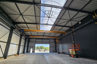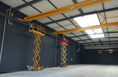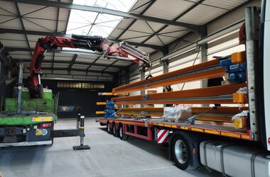 The crane installations are firmly integrated into the workshops' workflows. They enable safe, efficient, and precise handling of heavy metal structures, both in the preparation phase and during processing.