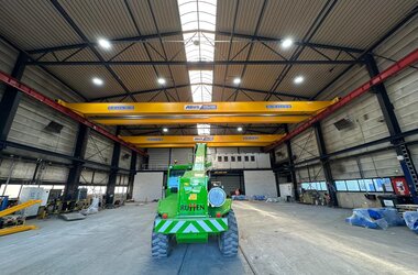 • Three single-girder semi-goliath cranes with a lifting capacity of 5 tonnes each. These cranes are ideal for efficiently moving workpieces within specific areas of the hall, offering a flexible workflow without compromising lifting performance.