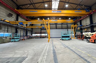 At Hollandia in Krimpen aan den Ijssel, a specialist in the design and construction of complex steel structures, ABUS Kraansystemen (NL) plays an important role in the daily operations at the production facility. In one of the company’s spacious plants, several crane systems have been installed to move heavy steel components safely, precisely, and efficiently.